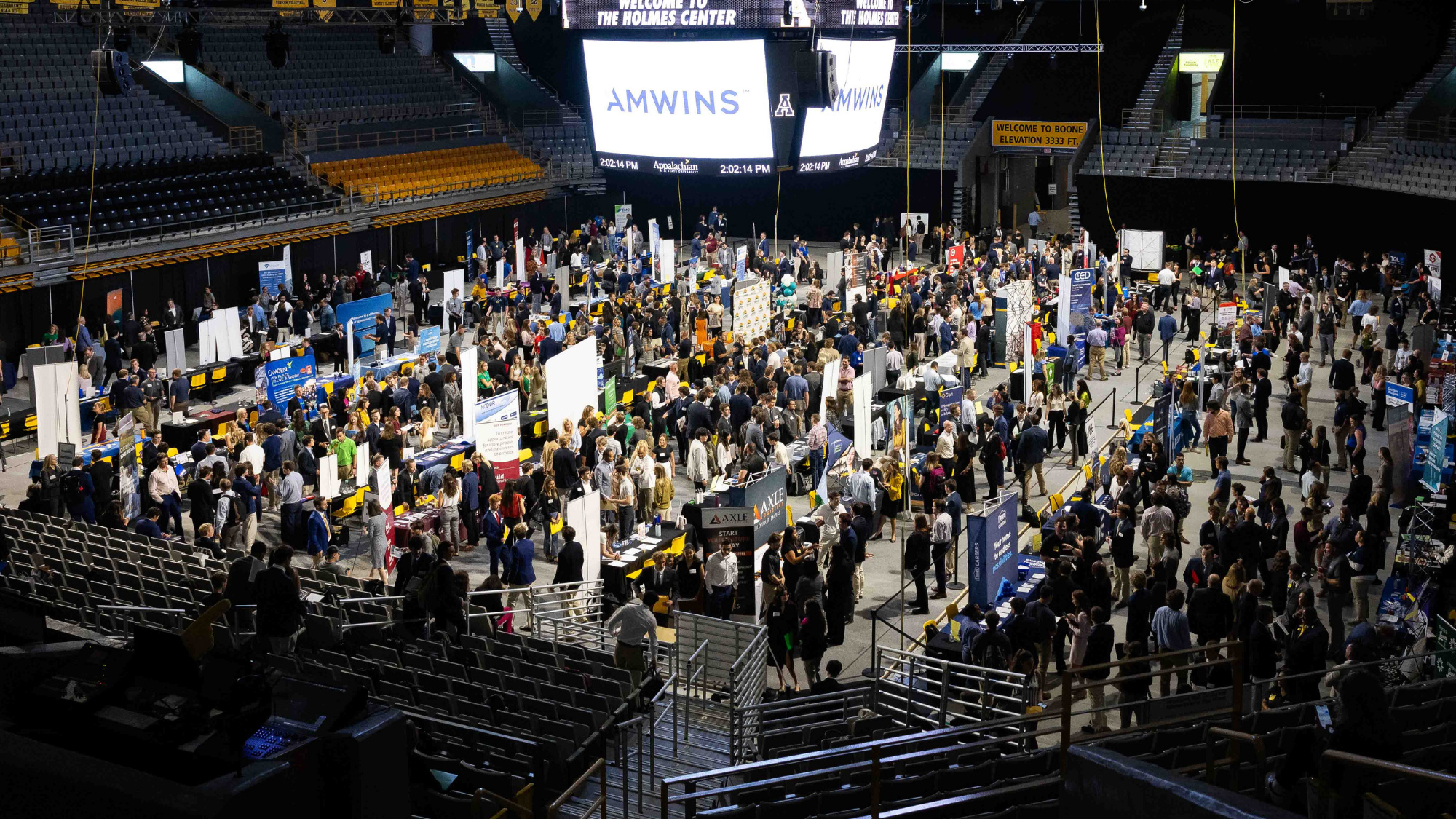 App State business students take part in the fall 2023 Walker Business Connections career fair, held in the Holmes Convocation Center at the university’s Boone campus. During this annual event, undergraduate and graduate business students are given the opportunity to network with representatives from a variety of employers to learn about full- and part-time careers, as well as internship opportunities. Photo by Kyla Willoughby
