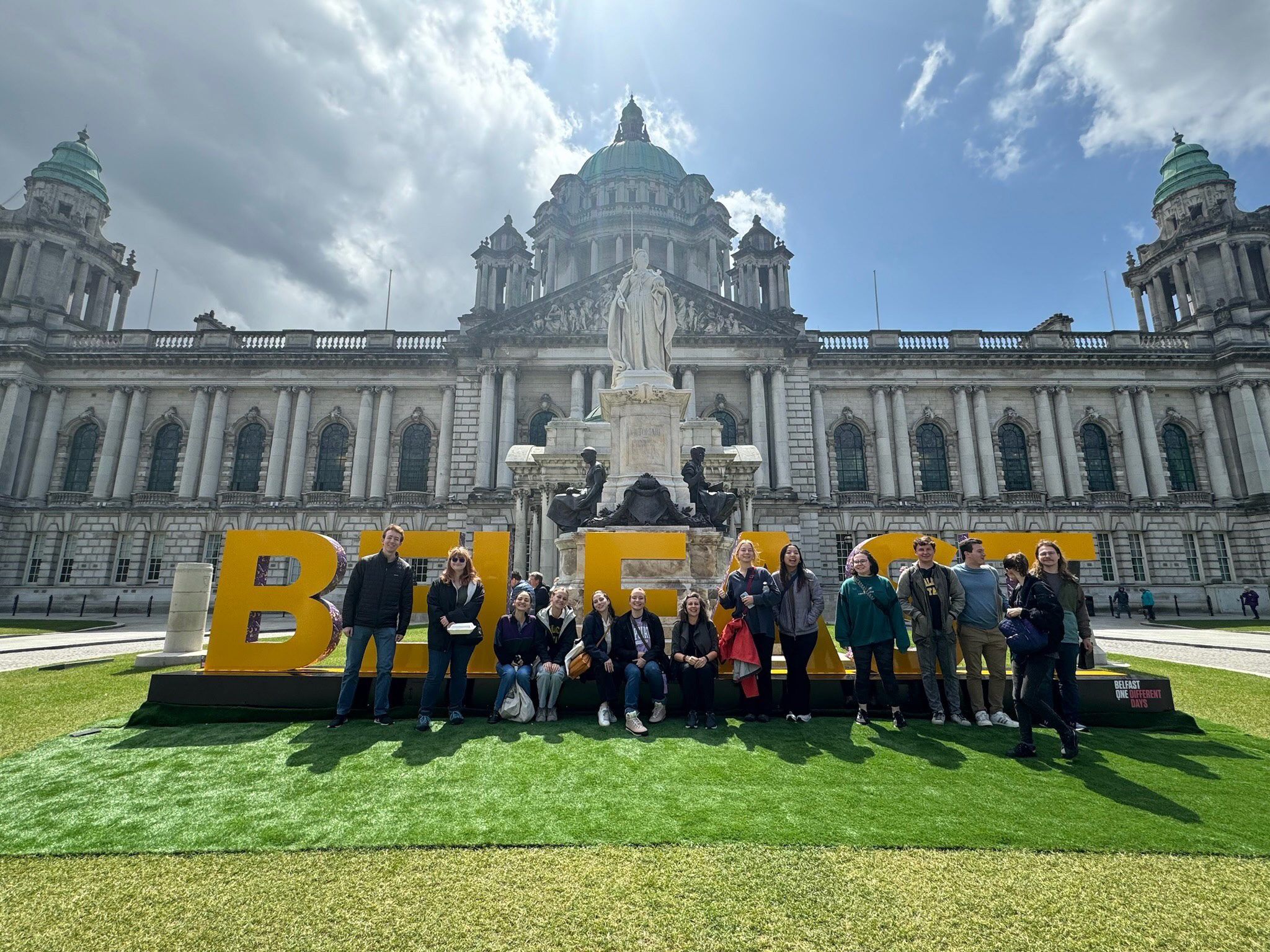 Mountaineer students gather in front of Belfast City Hall in Belfast — the capital of Northern Ireland, which is part of the United Kingdom — during the App State summer 2024 study abroad program “Human Rights and Peacebuilding in Ireland and Northern Ireland.” The study abroad program was co-led by Dr. Jessica Martell, professor in App State’s Department of Interdisciplinary Studies and coordinator of the global studies degree program, and Dr. Belinda Walzer, associate professor in App State’s Department of English. Photo by Belinda Walzer