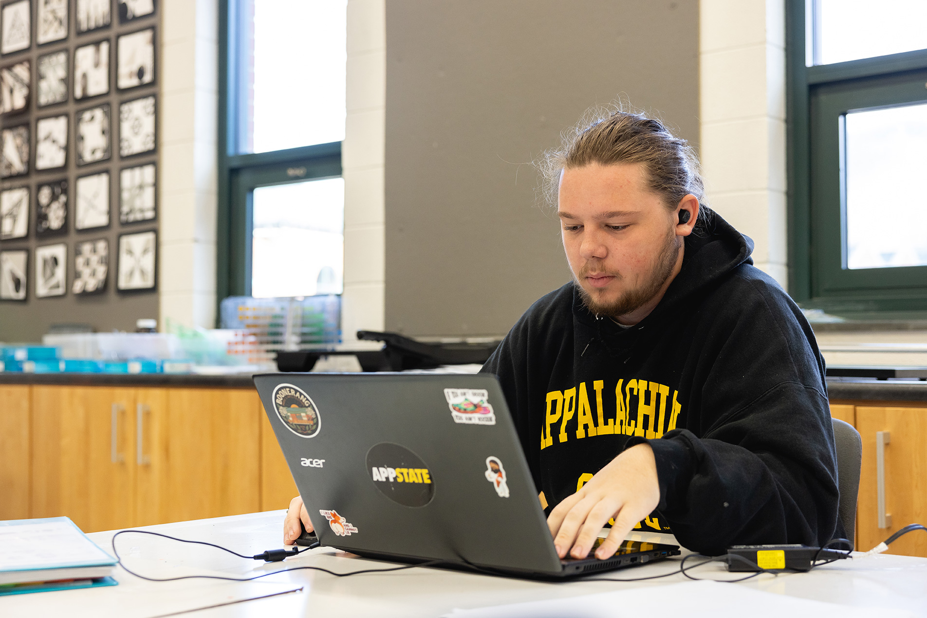 App State Online programs in business, education and nursing have been recognized among the best in the nation by U.S. News & World Report, which named the university in its “2026 Best Online Programs” rankings. Pictured, an App State student works on her laptop in the Plemmons Student Union Solarium on App State’s Boone campus. Photo by Kyla Willoughby
