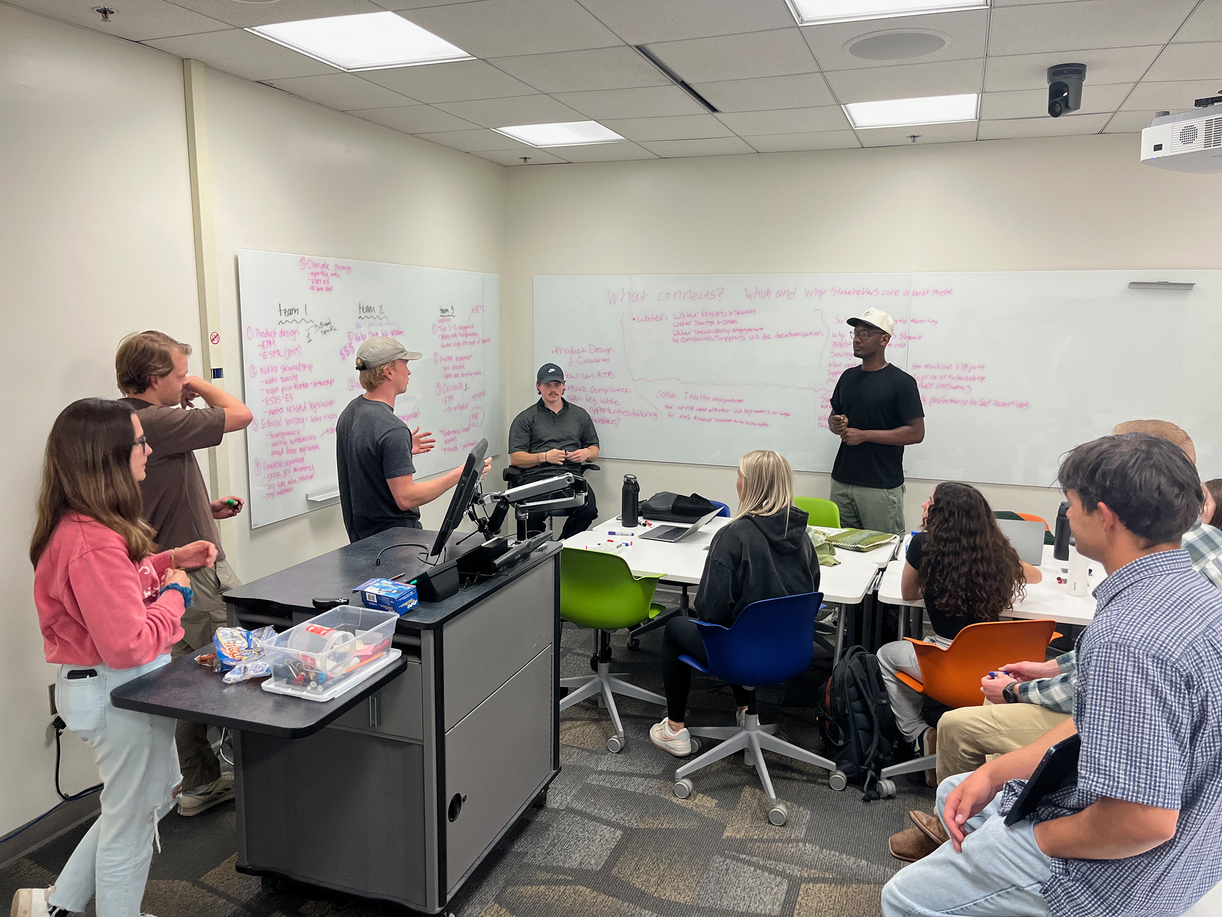Holland Fellows alumni Brad Sparks ’97 ’98, executive director of the Accounting for Sustainability Foundation, and Michael McSwain ’10, director of government and public affairs for Nike, share their professional insights as guest speakers.