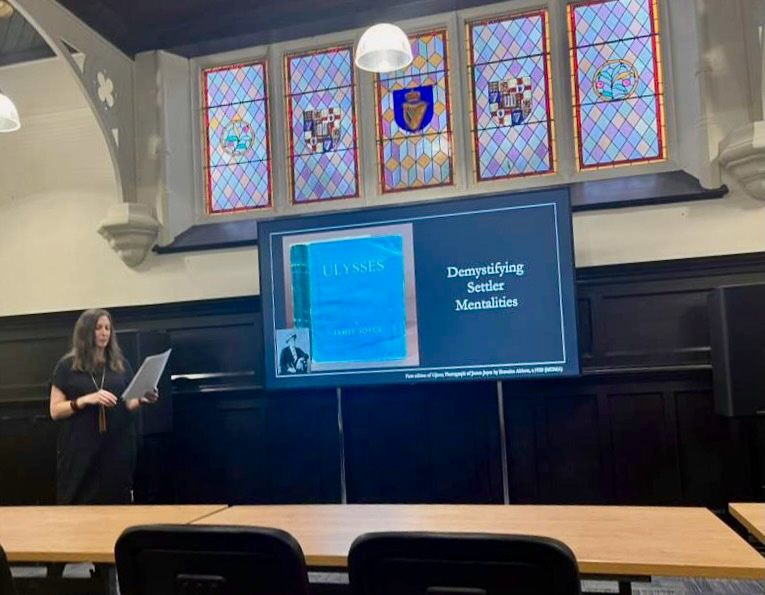 2025–26 Fulbright Scholar Dr. Jessica Martell, associate professor in App State’s Department of Interdisciplinary Studies, gives a talk titled “Plantation Mentalities and Modern Irish Literature” as part of the English program’s 2026 Research Seminar Series at Queen’s University Belfast. Martell serves as the 2025-26 Fulbright-Queen’s University Belfast Scholar in Irish Studies. Photo courtesy of Dr. Jessica Martell